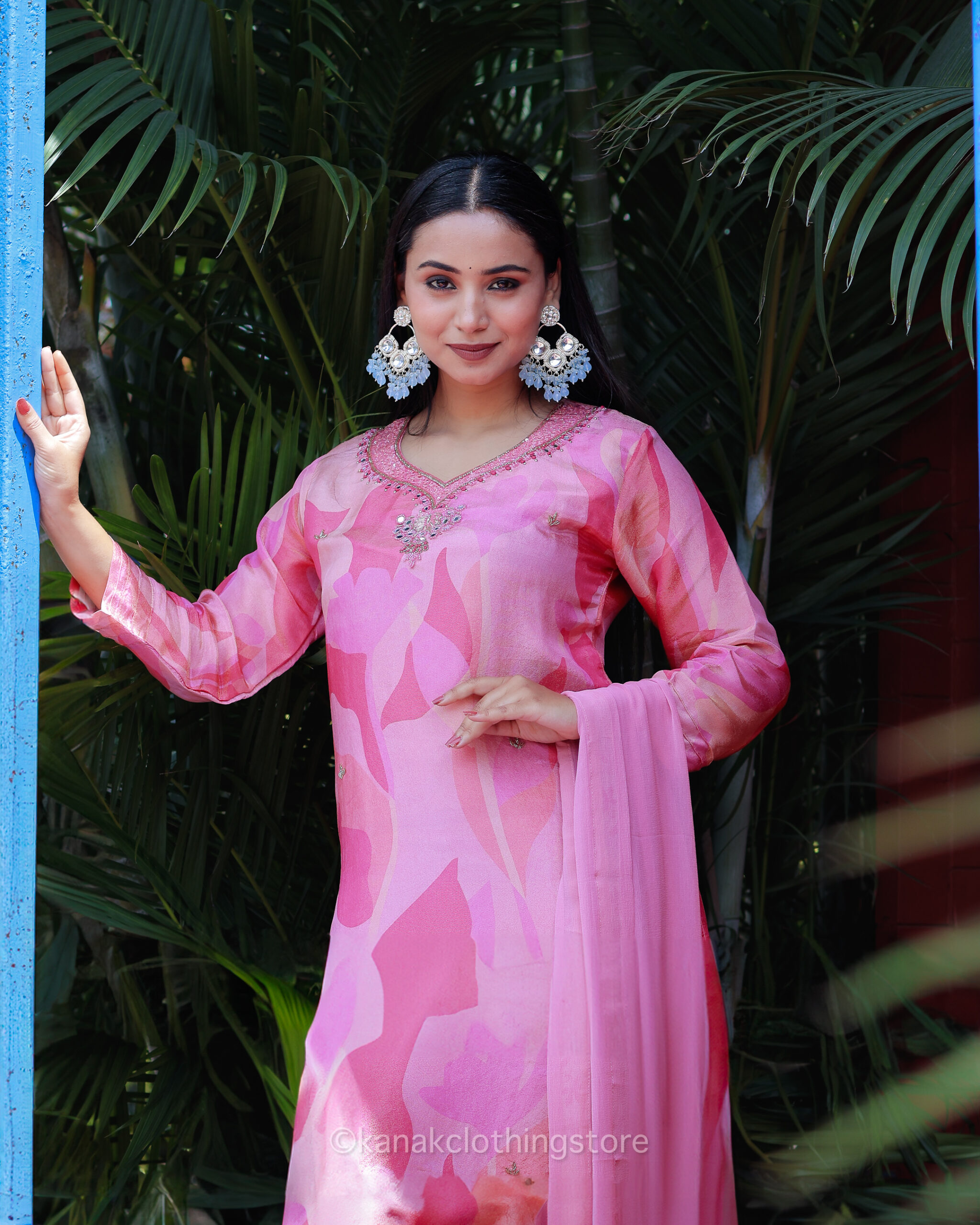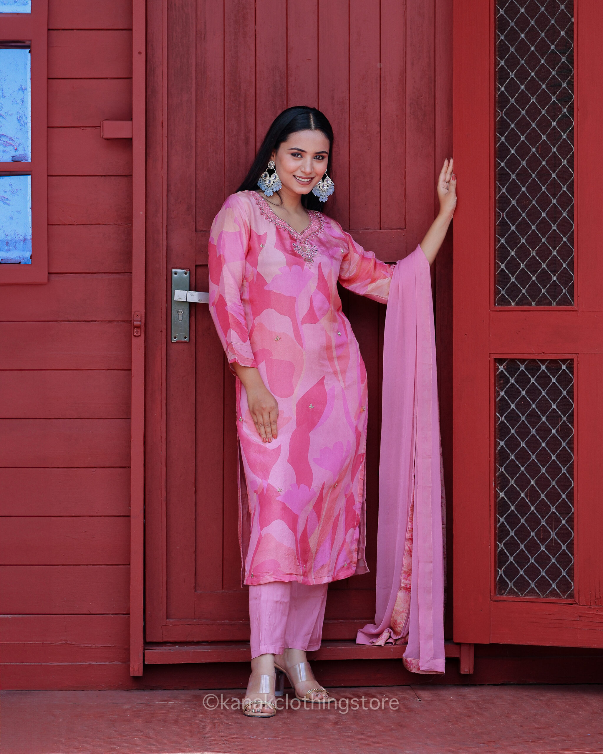 Be the first to review “Pink Kurti Pant Dupatta Set | Party Wear”